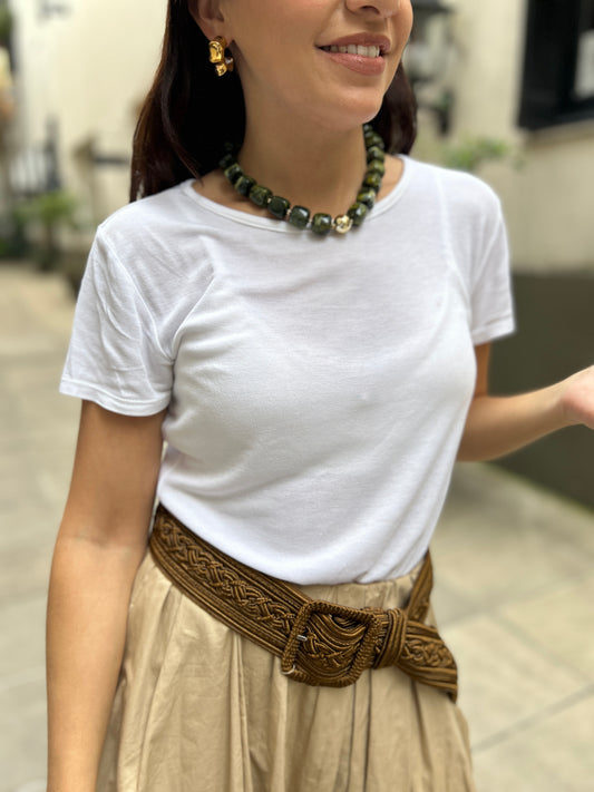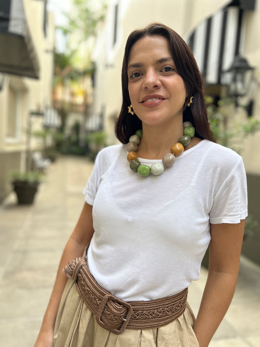 Aros, collares, anillos y brazaletes hechos artesanalmente en bronce con piedras naturales. Diseños que no pasan de moda para usar toda la vida.