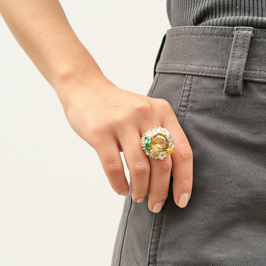 Anillo cristal y flores esmaltadas