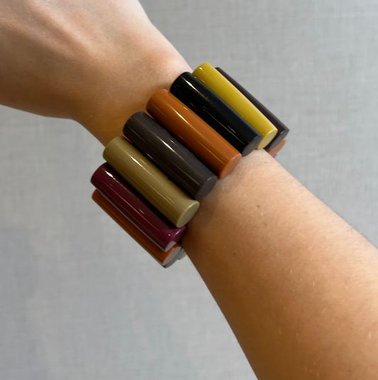 Pulsera ancha de resina mostaza