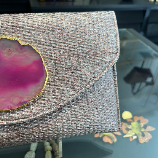 Clutch de rafia fucsia
