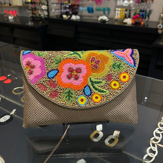 Cartera bordada con piedras multicolor