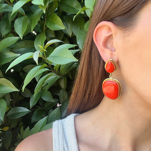 Coral mink and green flower hoops