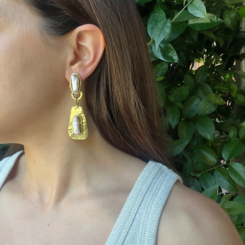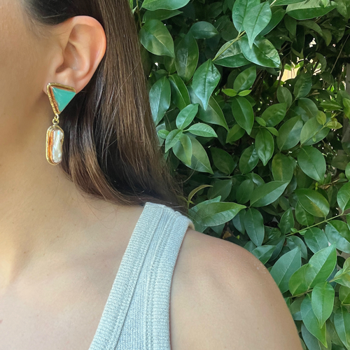 Aros perla barroca y piedra natural