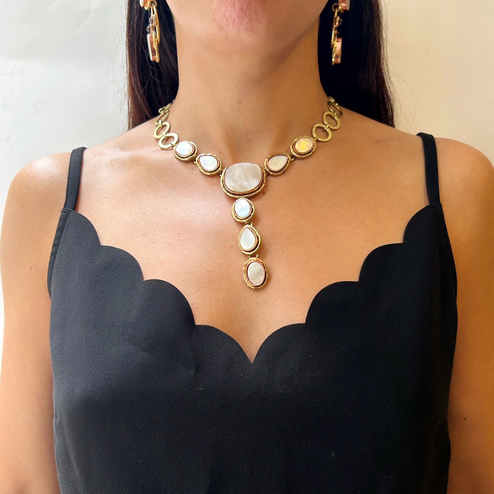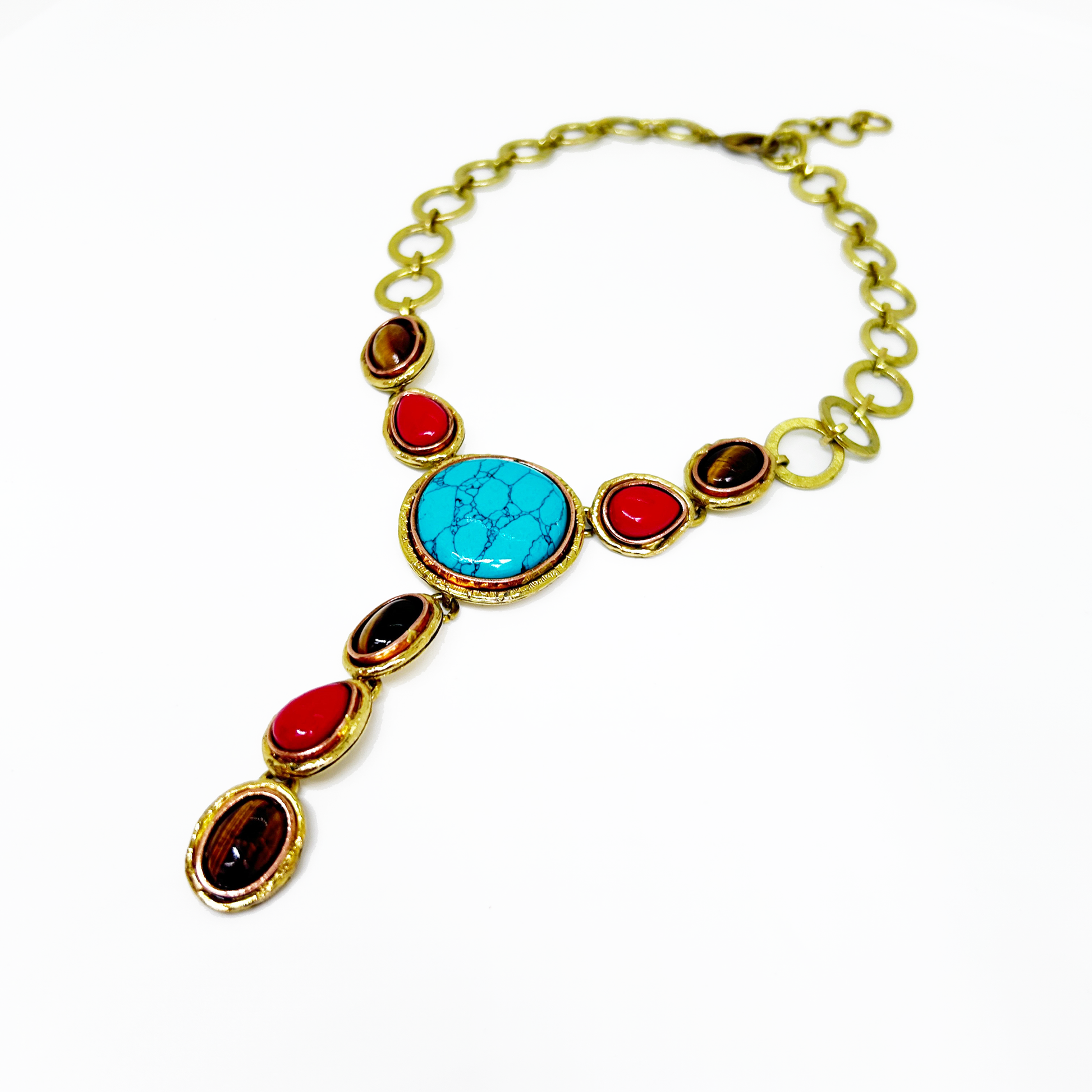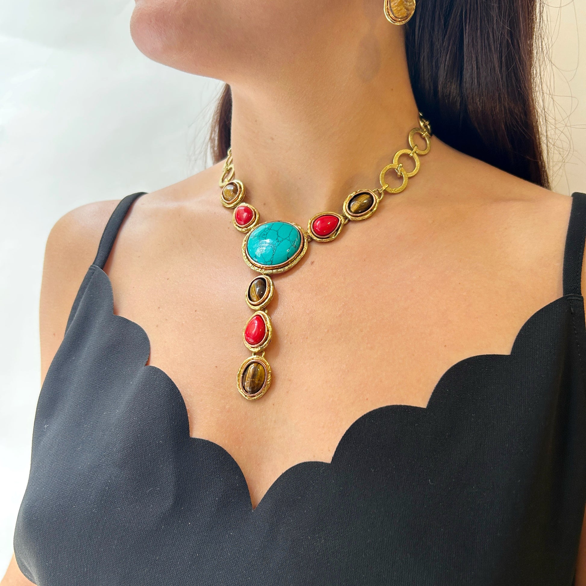 Collar hecho artesanalmente en bronce y piedras naturales engarzadas.