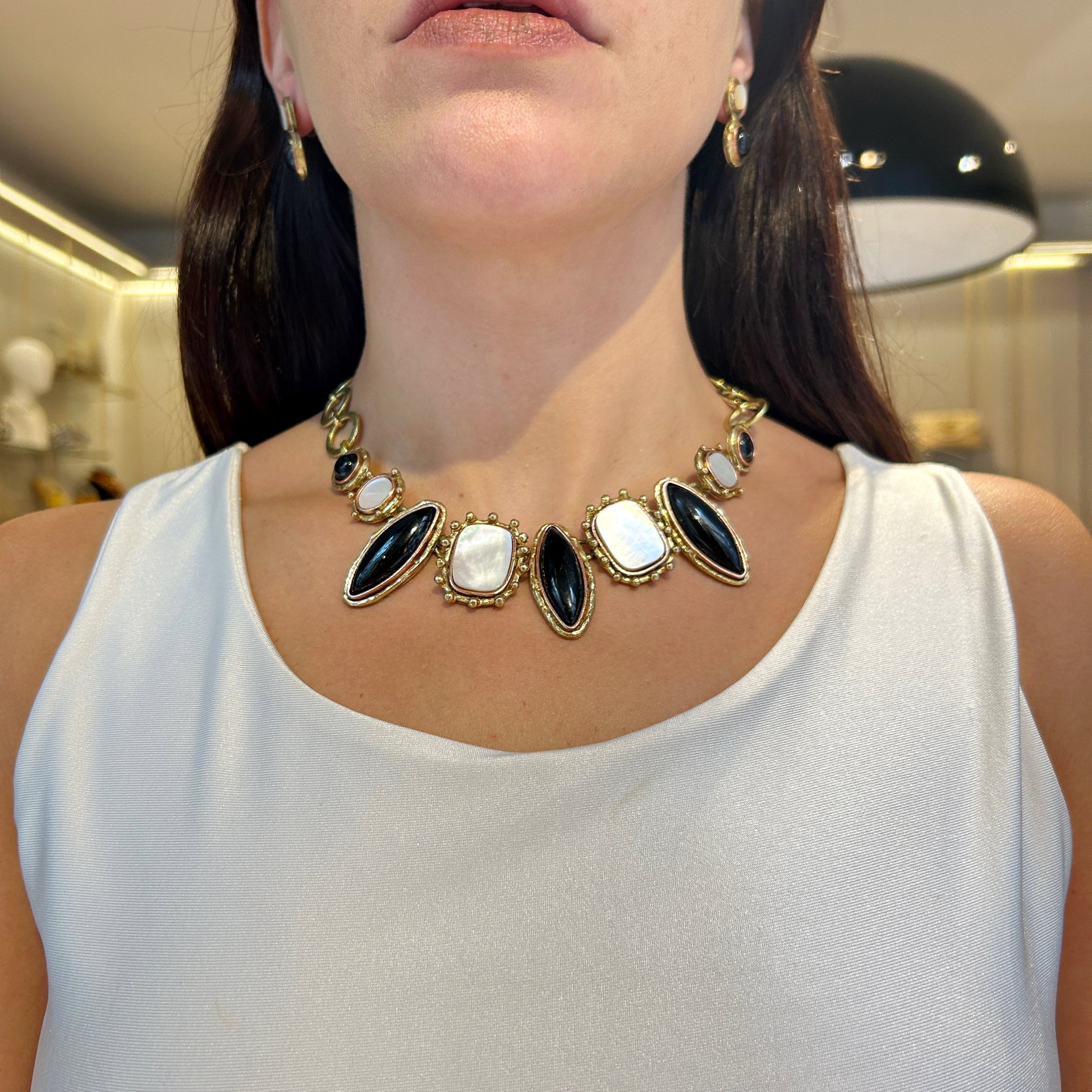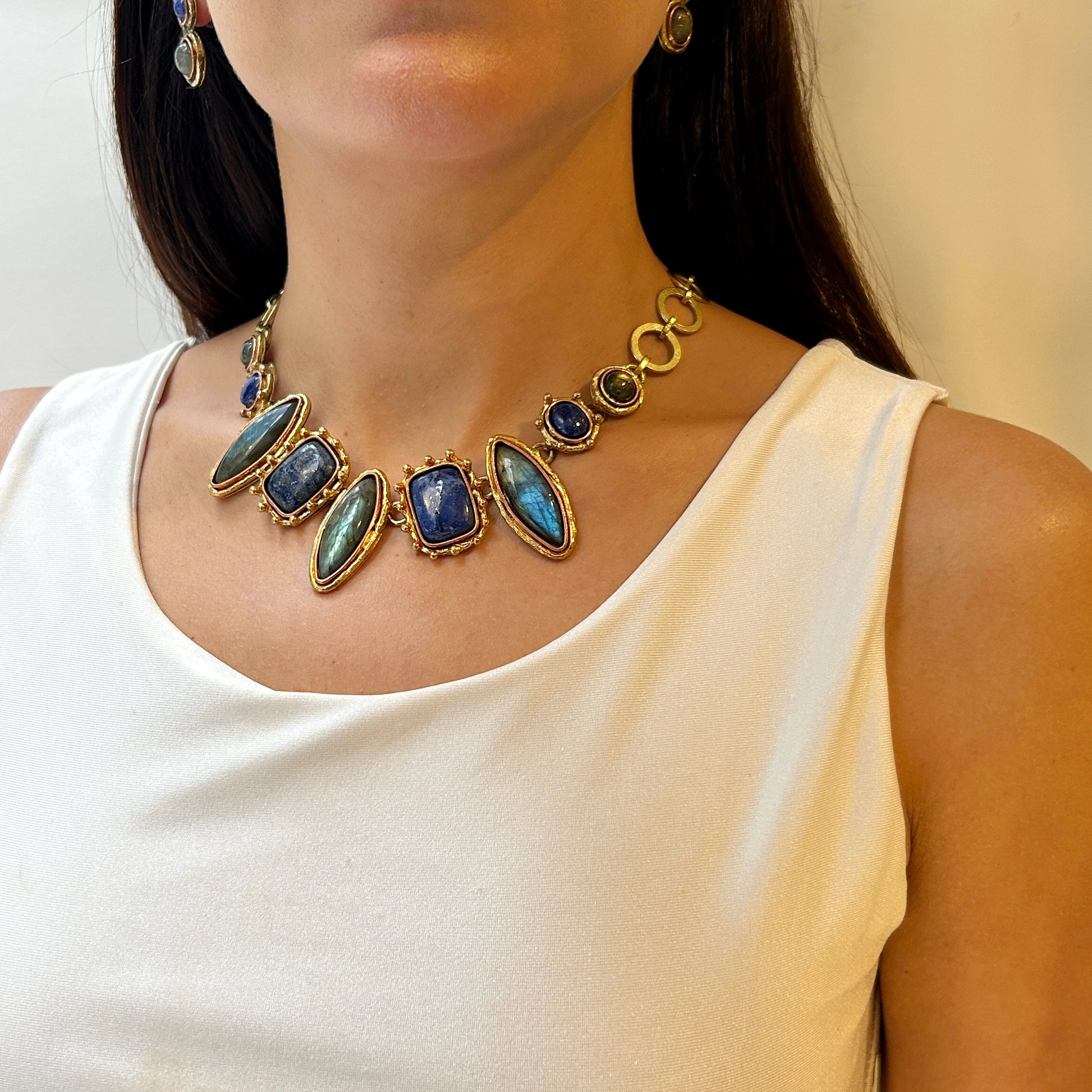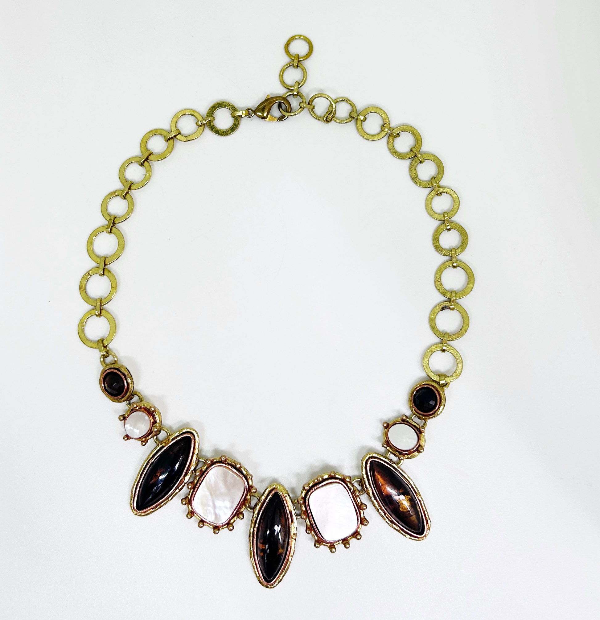 Collar hecho artesanalmente en bronce y piedras naturales engarzadas.
