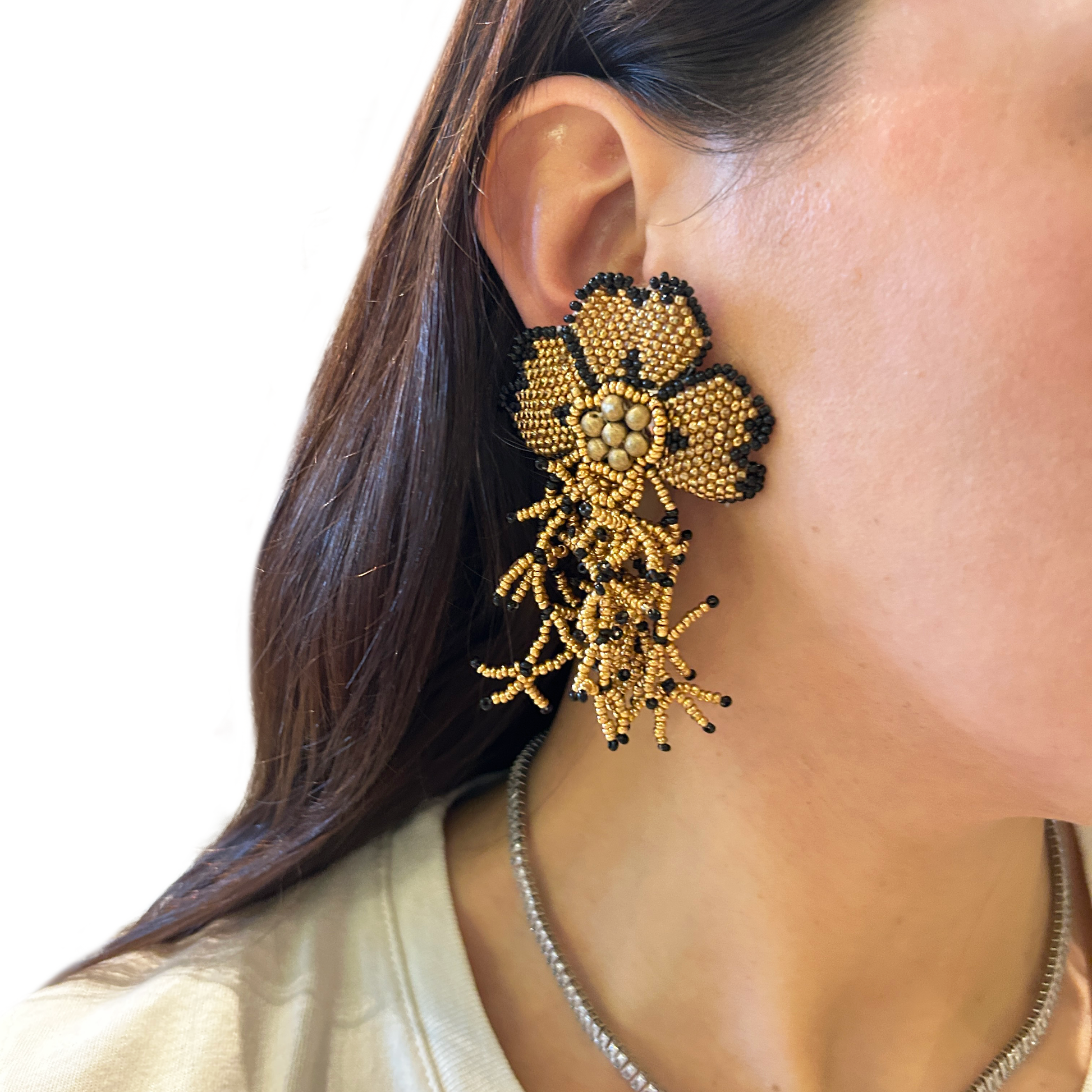 Aros hechos en mostacillas en forma de floes con lluvia a tono
