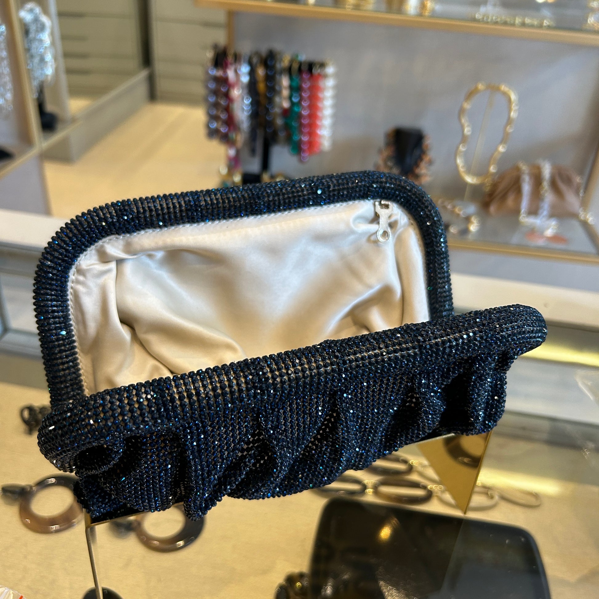 Bolso de malla de strass azul