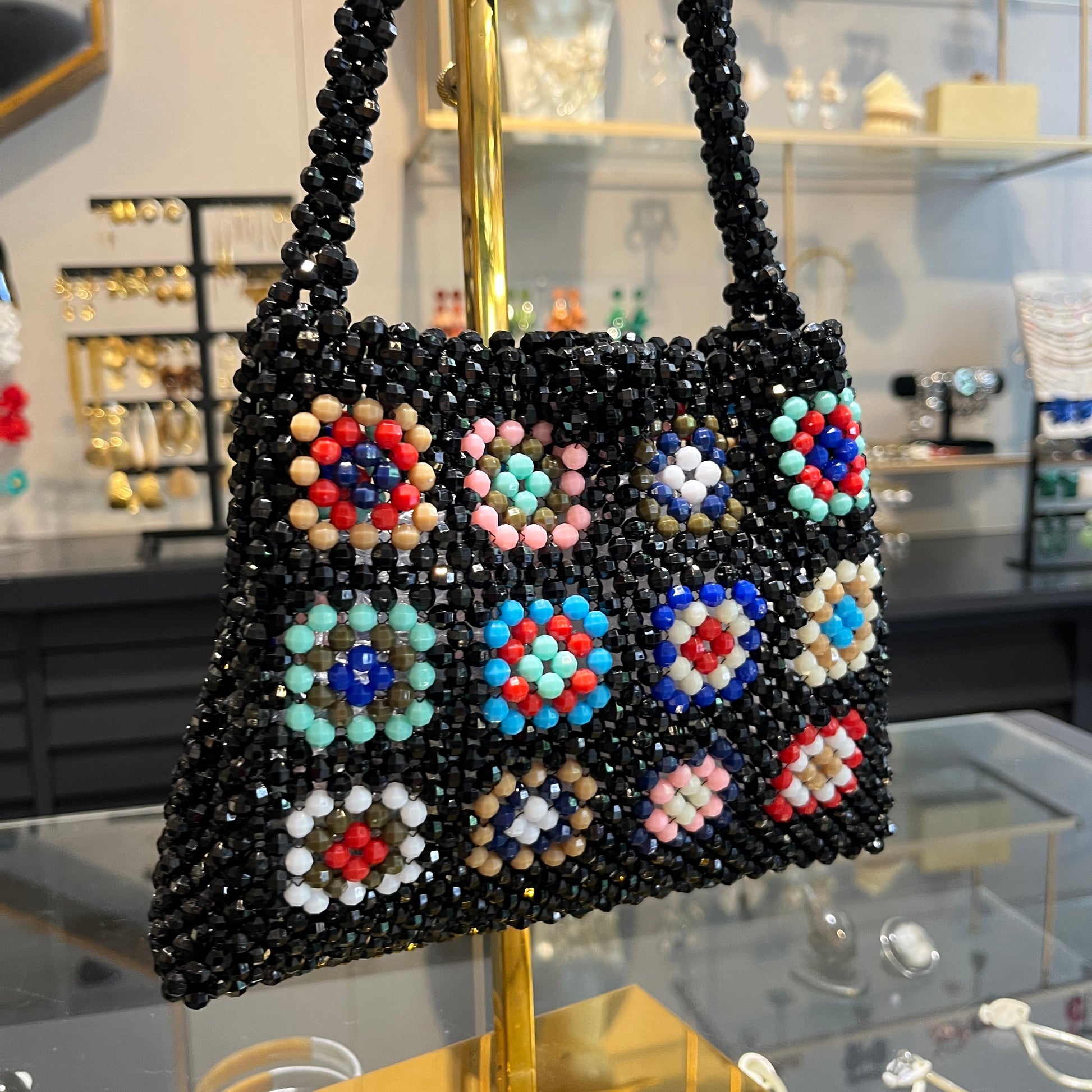 Bolso hecho artesanalmente en cuentas de resina, estilo patchwork, con muchos colores!