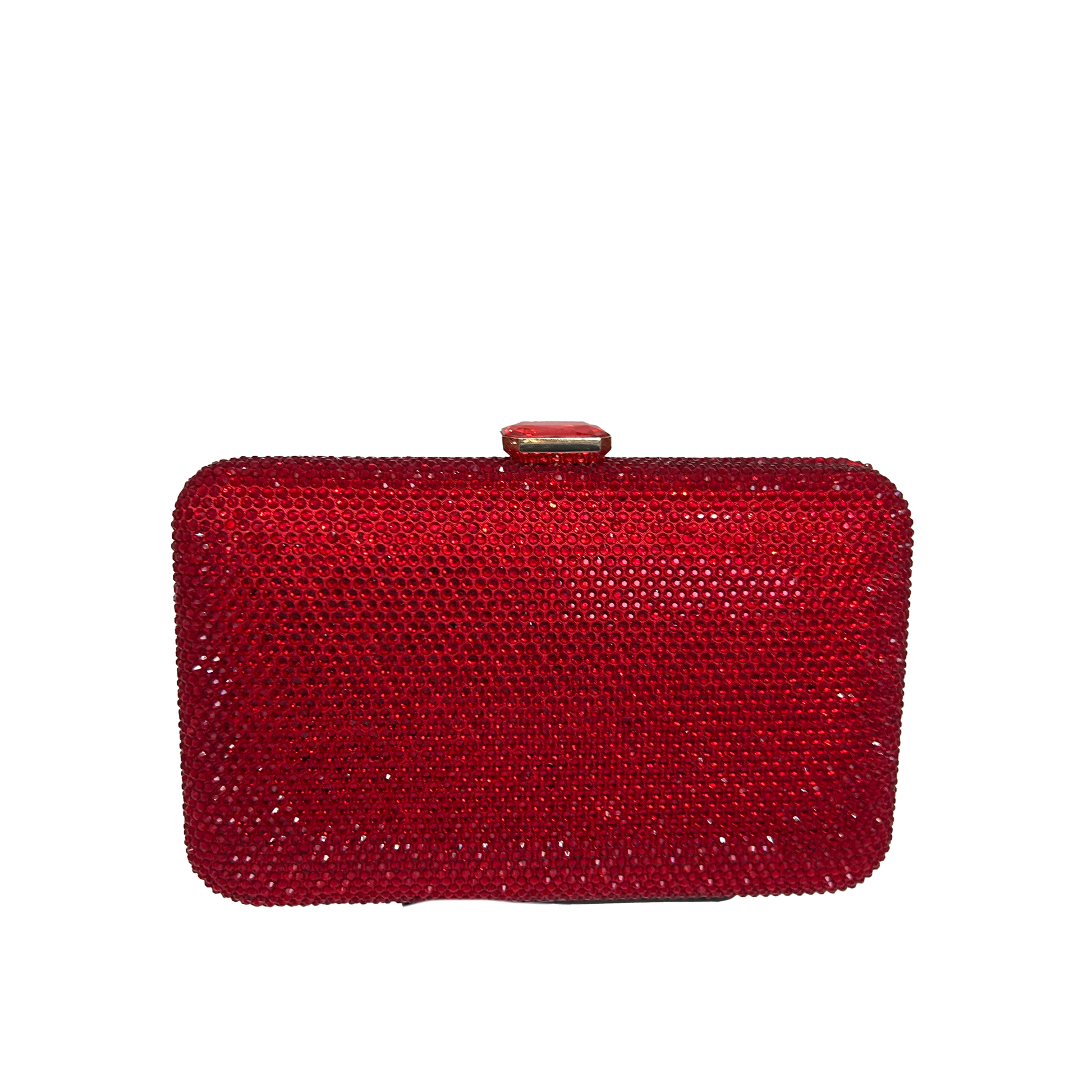 Bolso tipo clutch de pedrería roja super elegante para un evento formal. Un clásico atemporal, que nunca pasa de moda!