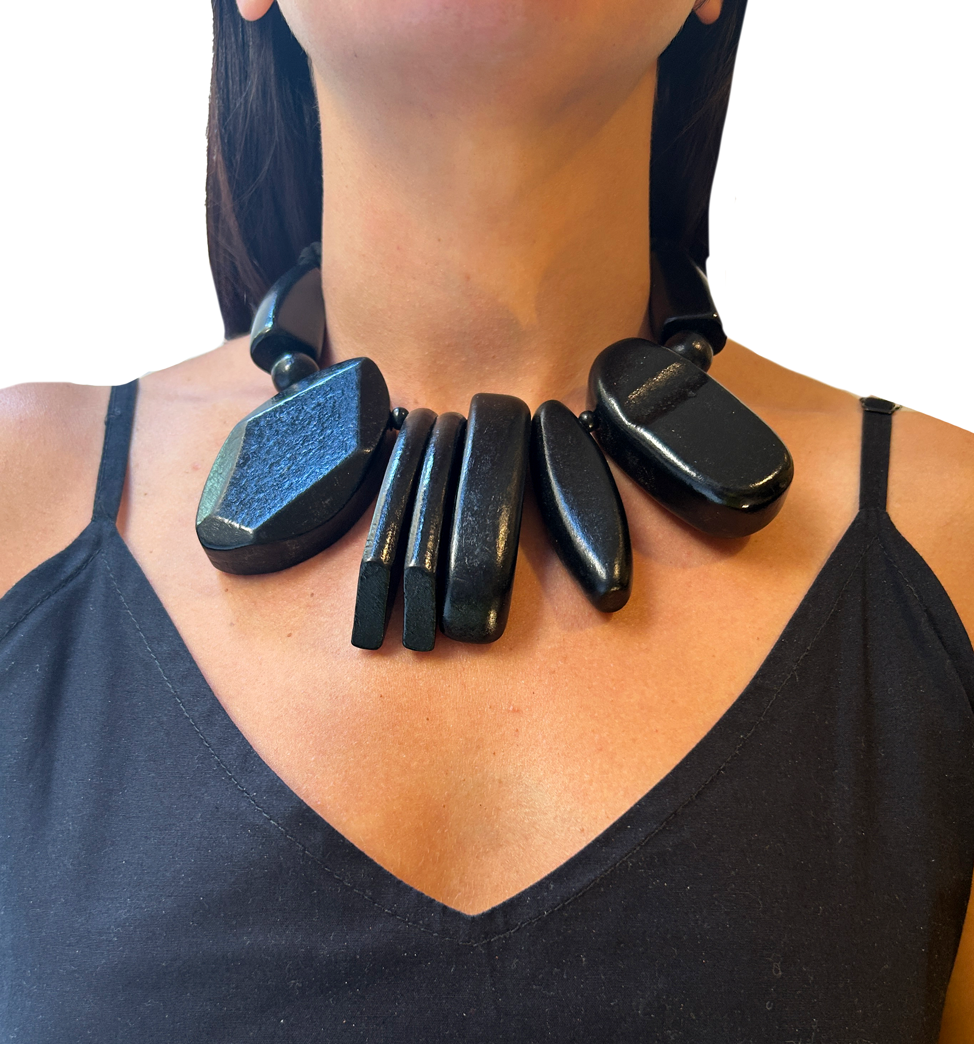 Collar cuentas geometricas de madera