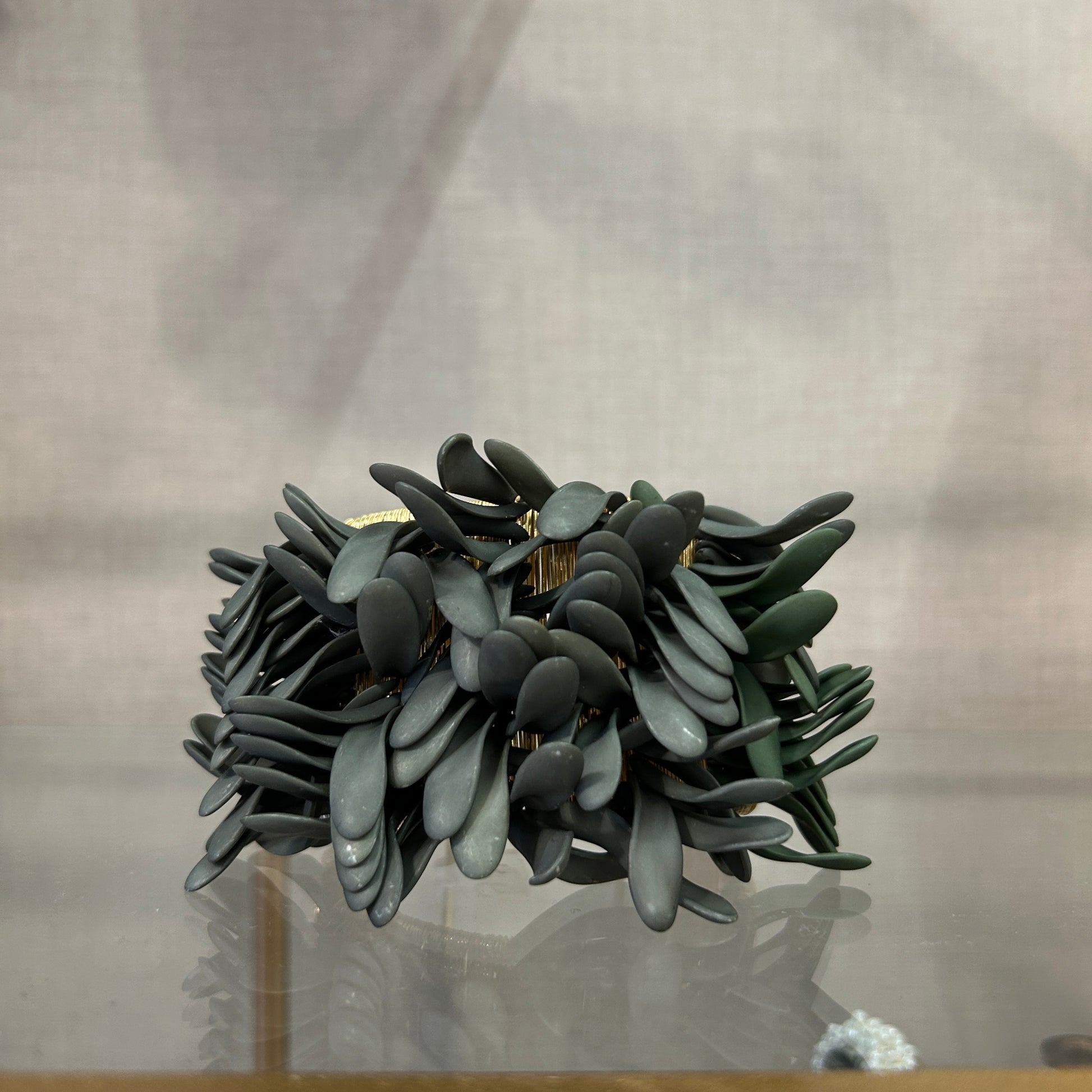Pulsera de base metálica con aplique rectangular de pétalos de resina opacos
